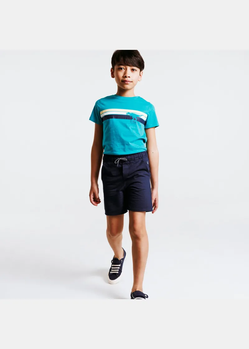 Бермуди за момчиња од памучен материјал и еластичен појас со врвки. Имаат 2 коси џебови од напред и 2 лажни џебови одзади.