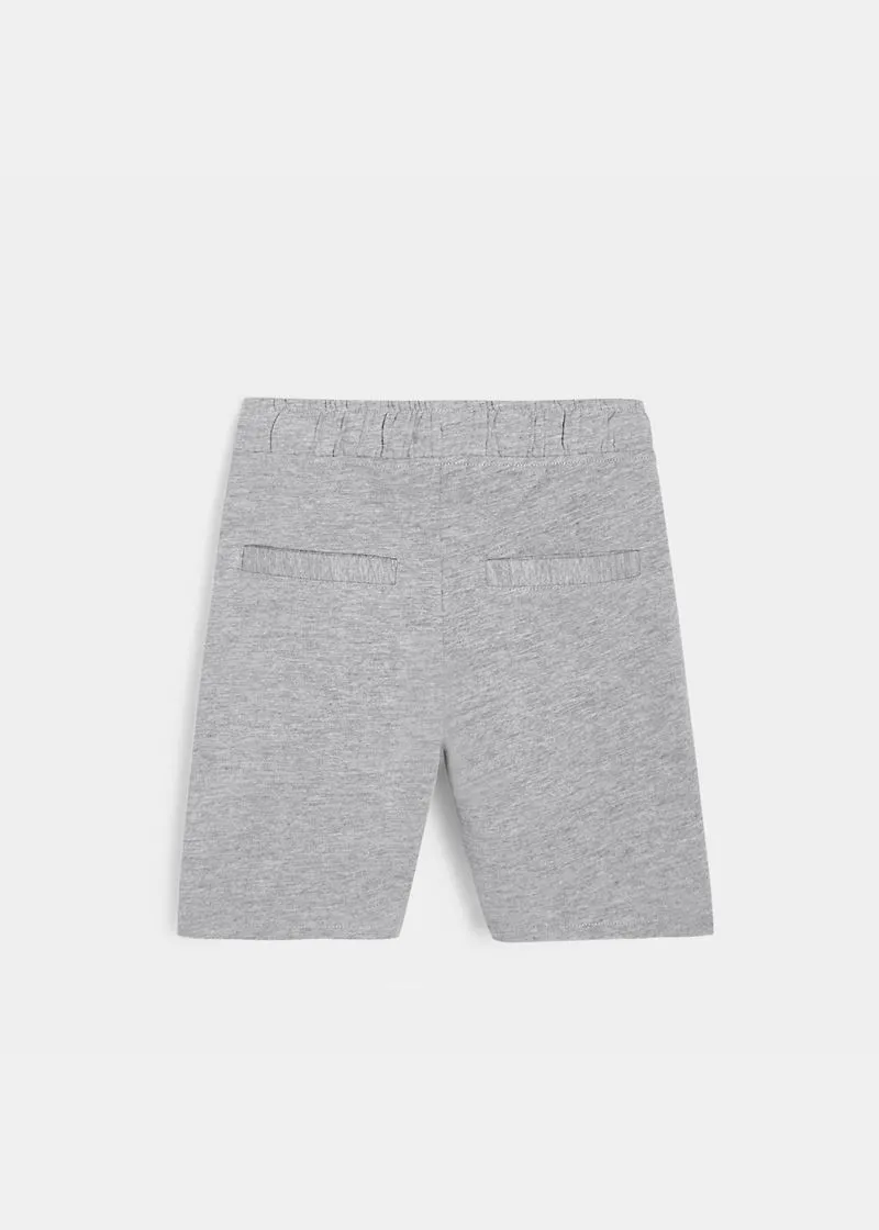 Бермуди за момчиња од памучен материјал и еластичен појас со врвки. Имаат 2 коси џебови од напред и 2 лажни џебови одзади.