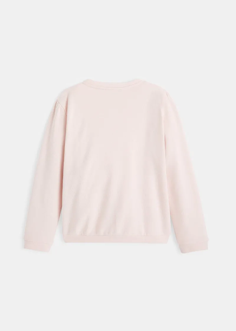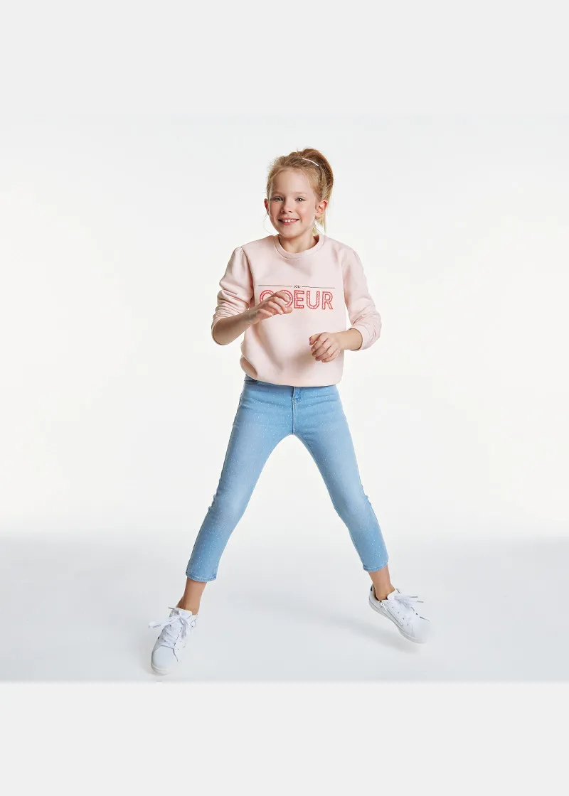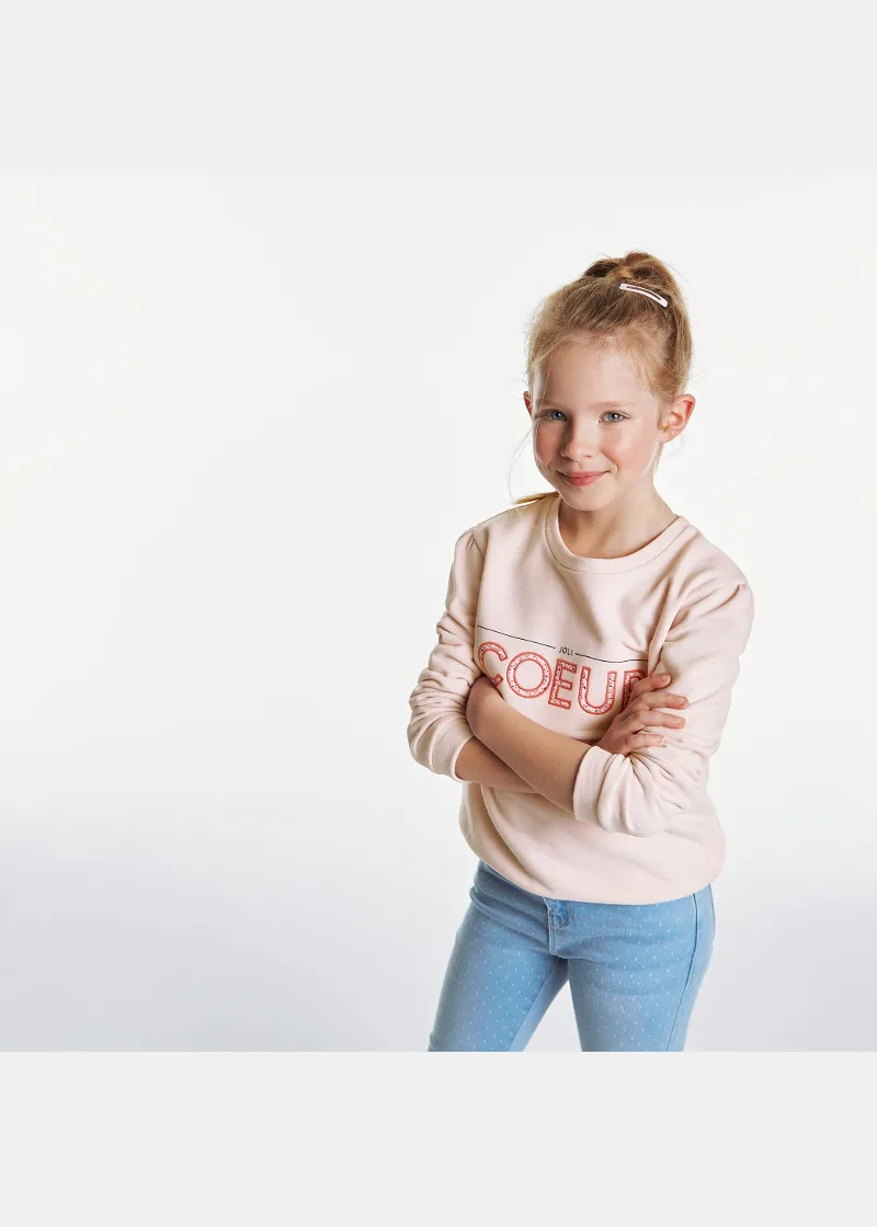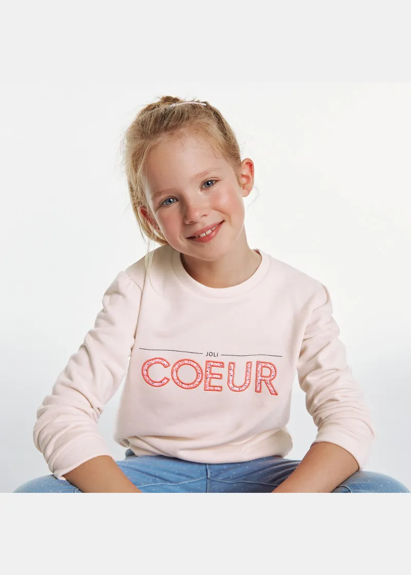Овој дуксер со кружна јака за девојчиња се карактеризира со впечатливи букви. Блузон со модерен, заострен раб и манжетни, направен од меко органско памучно руно.