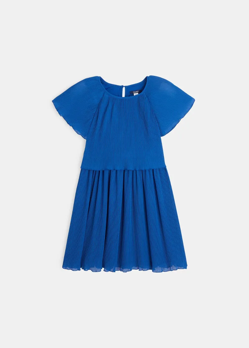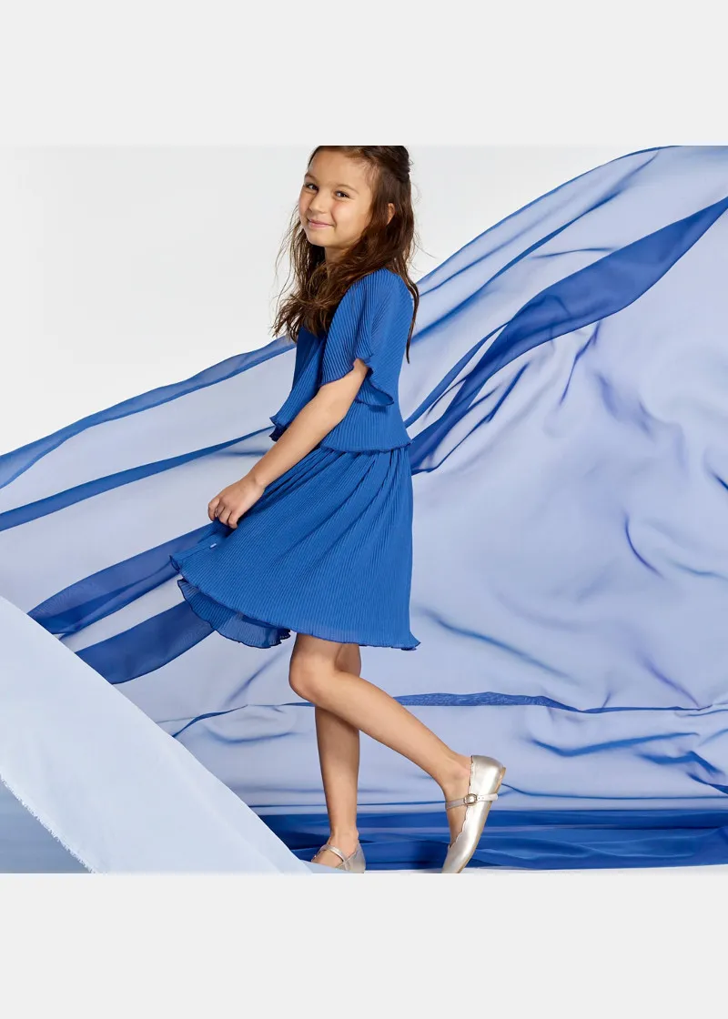 Прекрасен сет од слоеви со ефект 2-во-1 за овој фенси фустан. Фустан со кратки ракави во пеперутка стил, изработен од лесна ткаенина.