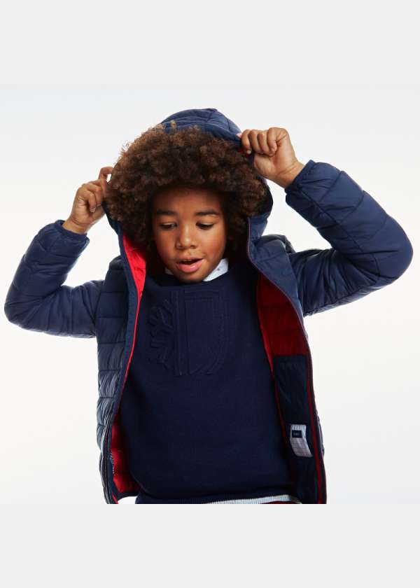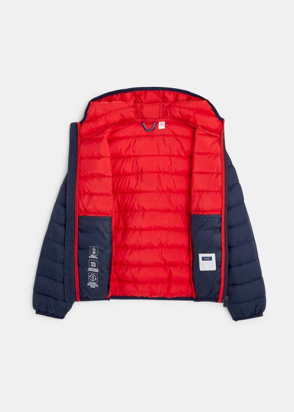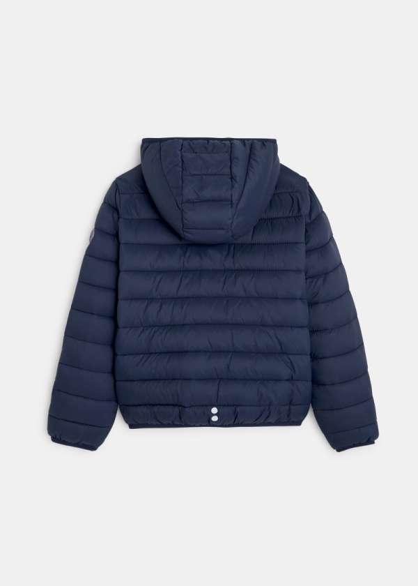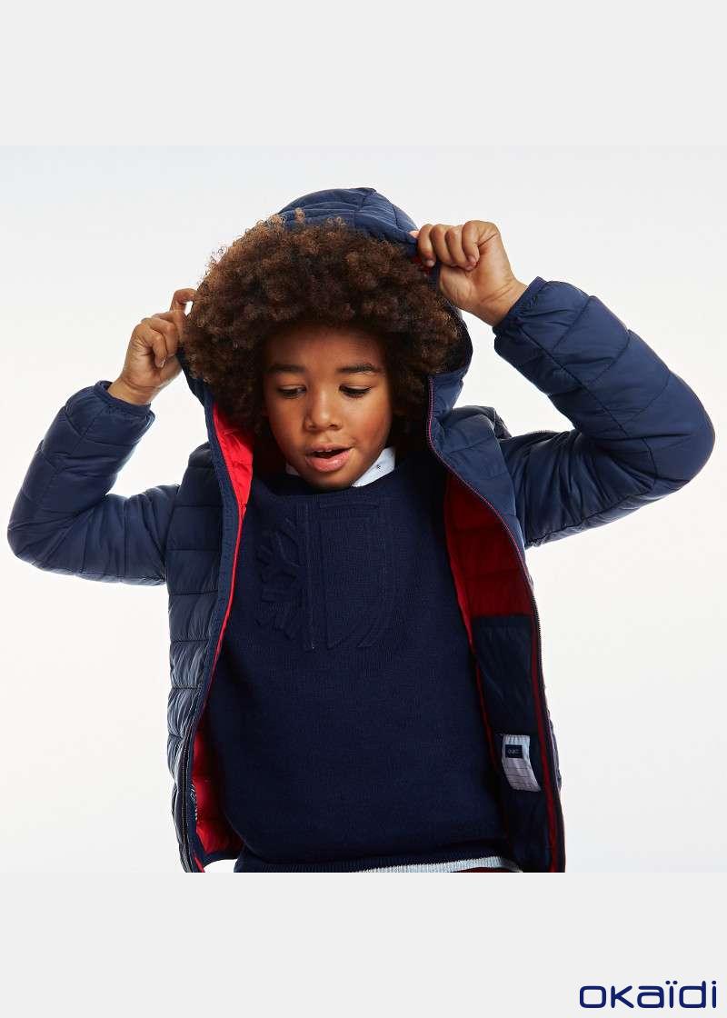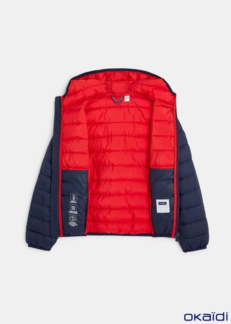 Полнета јакна за момчиња. ТОПЛА: заштитува дури и до -10?C. ВОДООТПОРНА: Еколошка: направена од рециклиран полиестер од пластични шишиња. ПРАКТИЧНА: се пере во машина, рефлектирачки детали. Со качулка. 2 надворешни и 2 внатрешни џеба. НИСКА ЦЕНА.