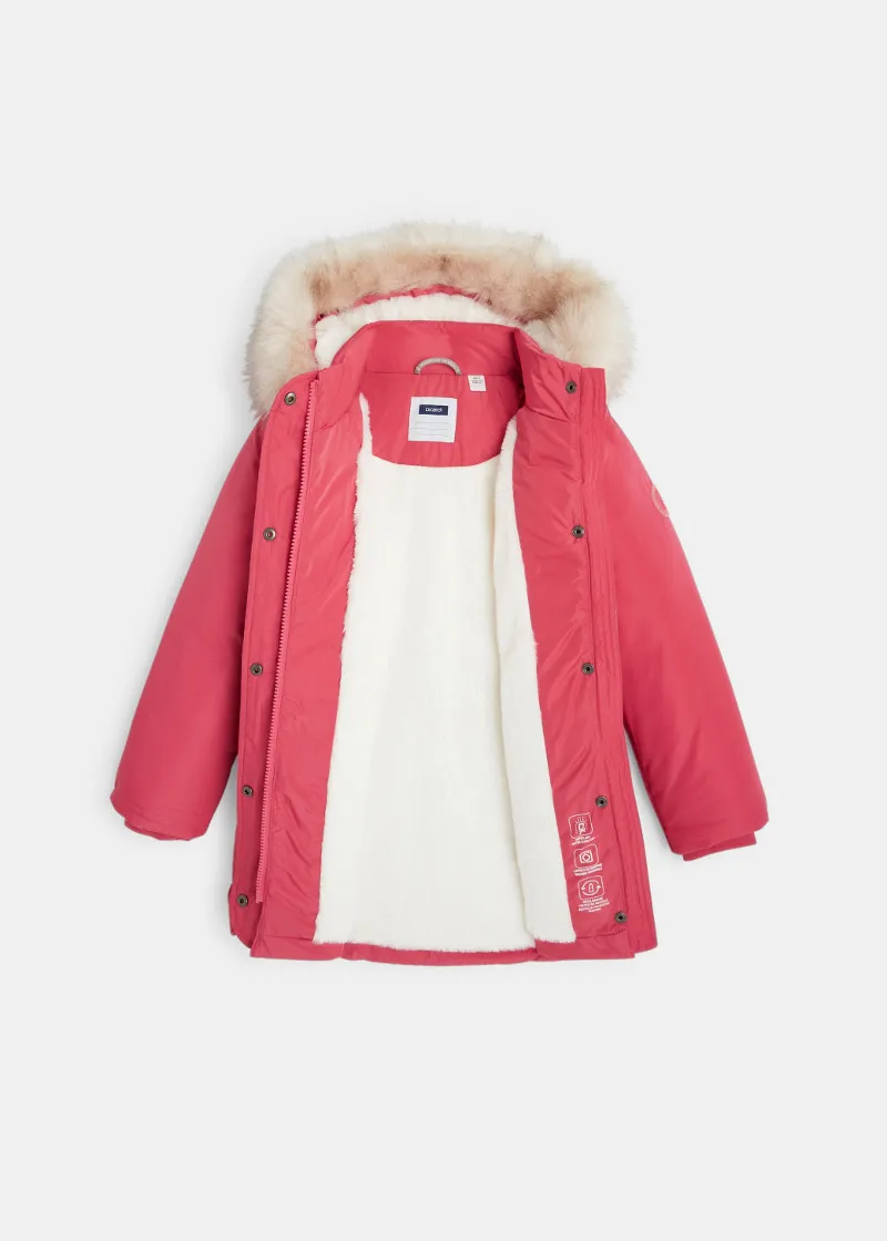 ЕКОЛОШКО: Полиестер изработен од рециклирани пластични и пластични шишиња. ПРАКТИЧНО: Тестирано за заштита од студено време до -20 ?УДОБНОСТ: Топла постава. ПРАКТИЧНО: Рефлектирачки елементи и отстранливо вештачко крзно. ВОДООТПОРНО