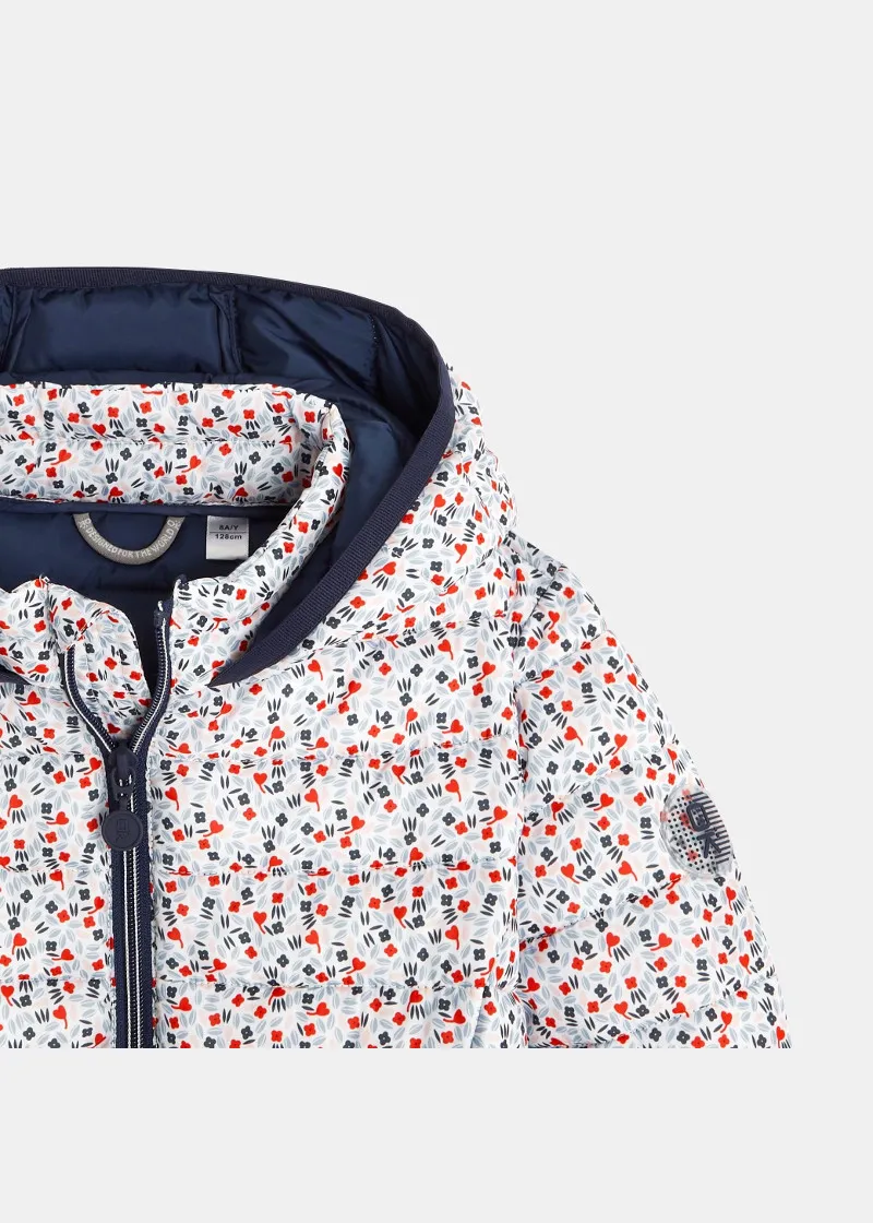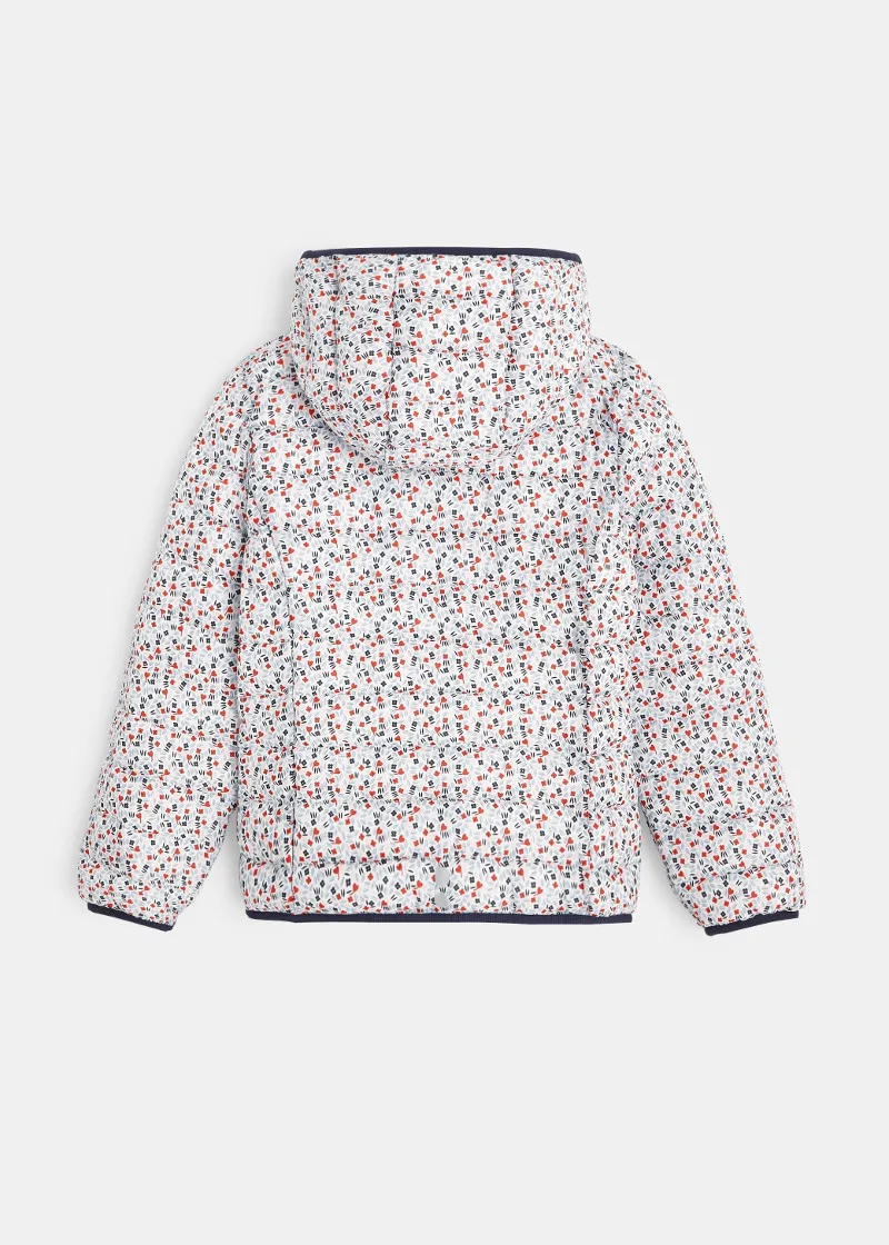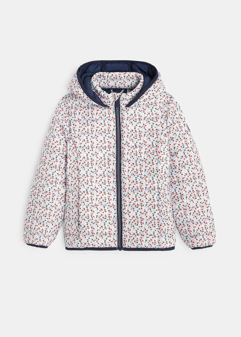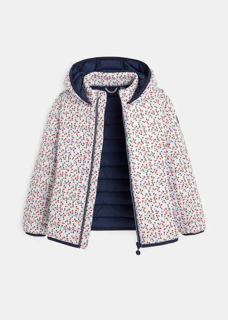 Оваа лесно обложена јакна се одликува со модерен, шарен графички отпечаток за стилско загревање на девојчињата. Лесна и топла обложена јакна, може да се носи самостојно или под палто. Практично затворање со патенти. 2 џебови.