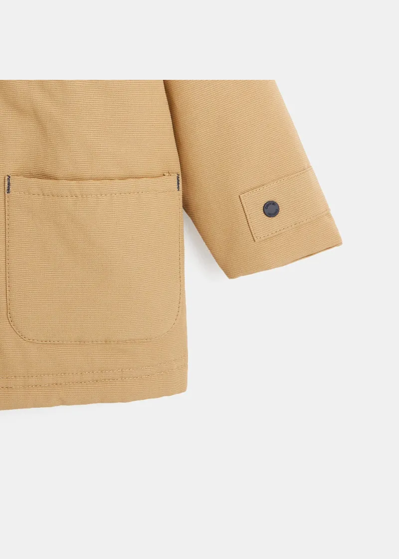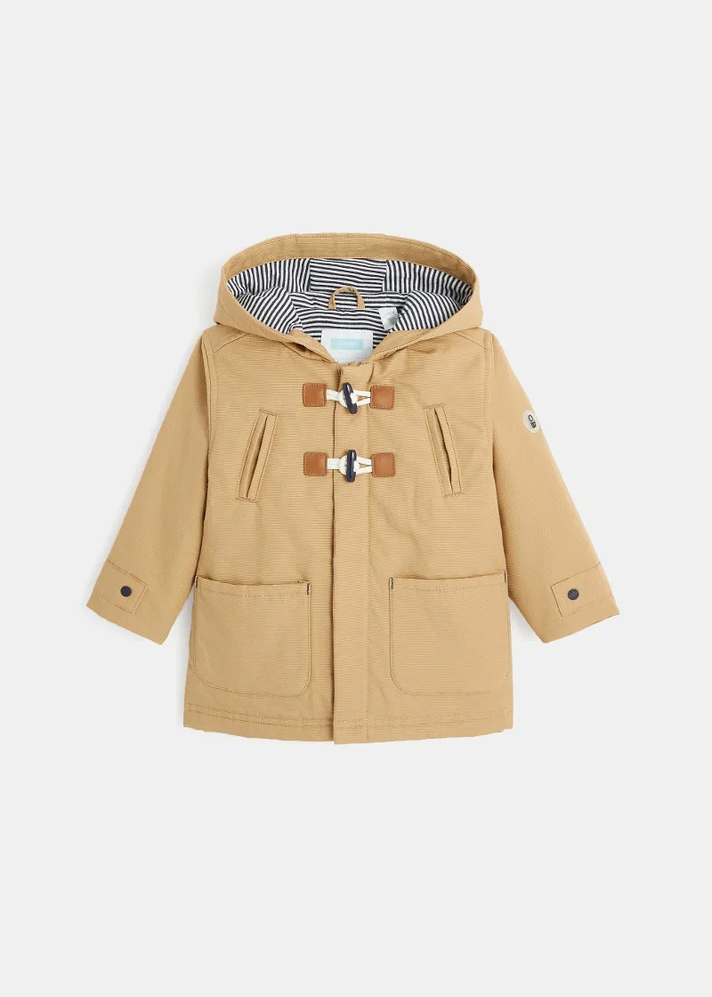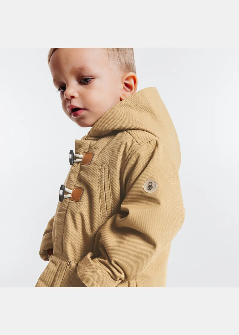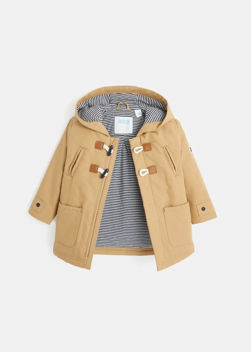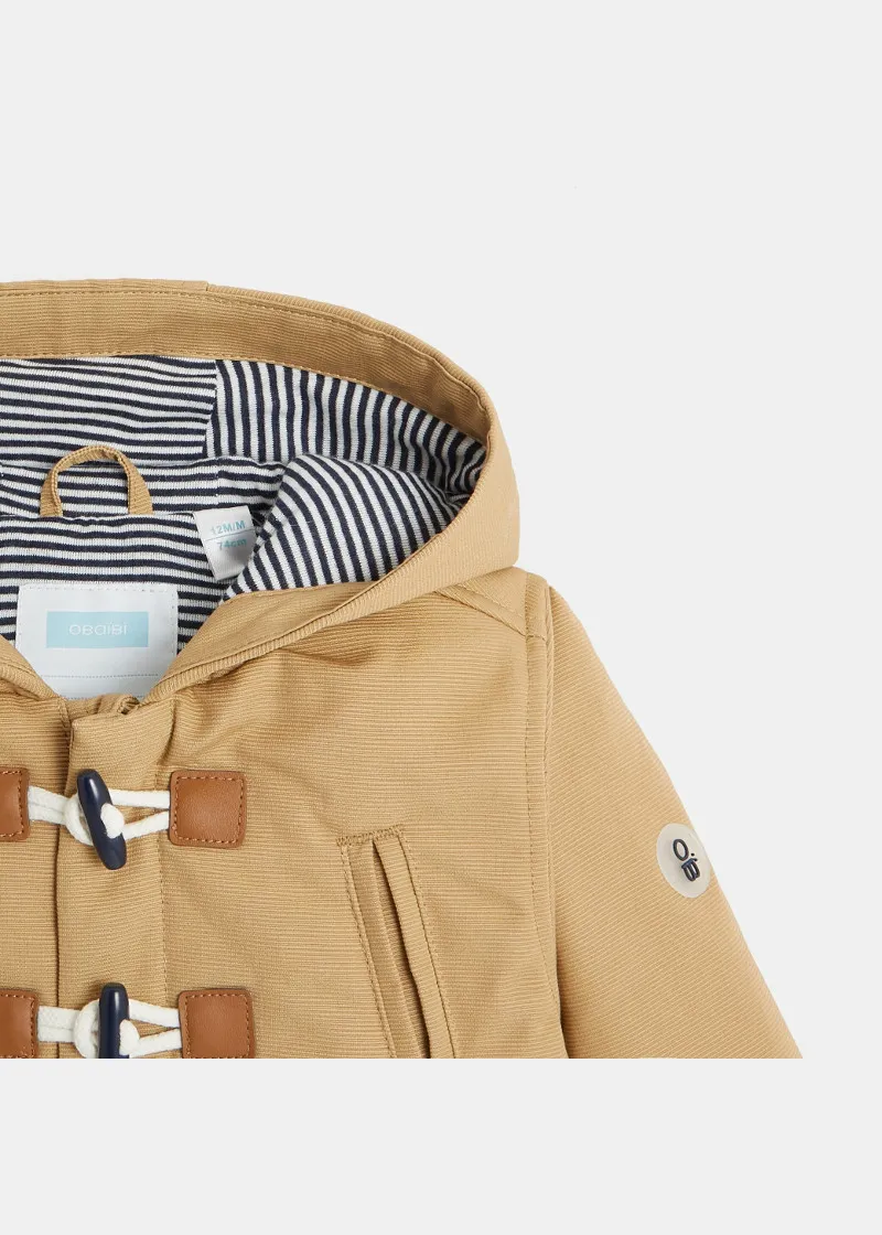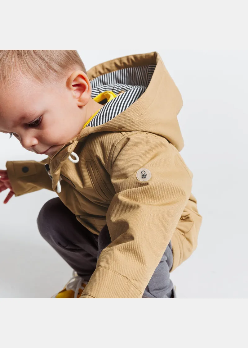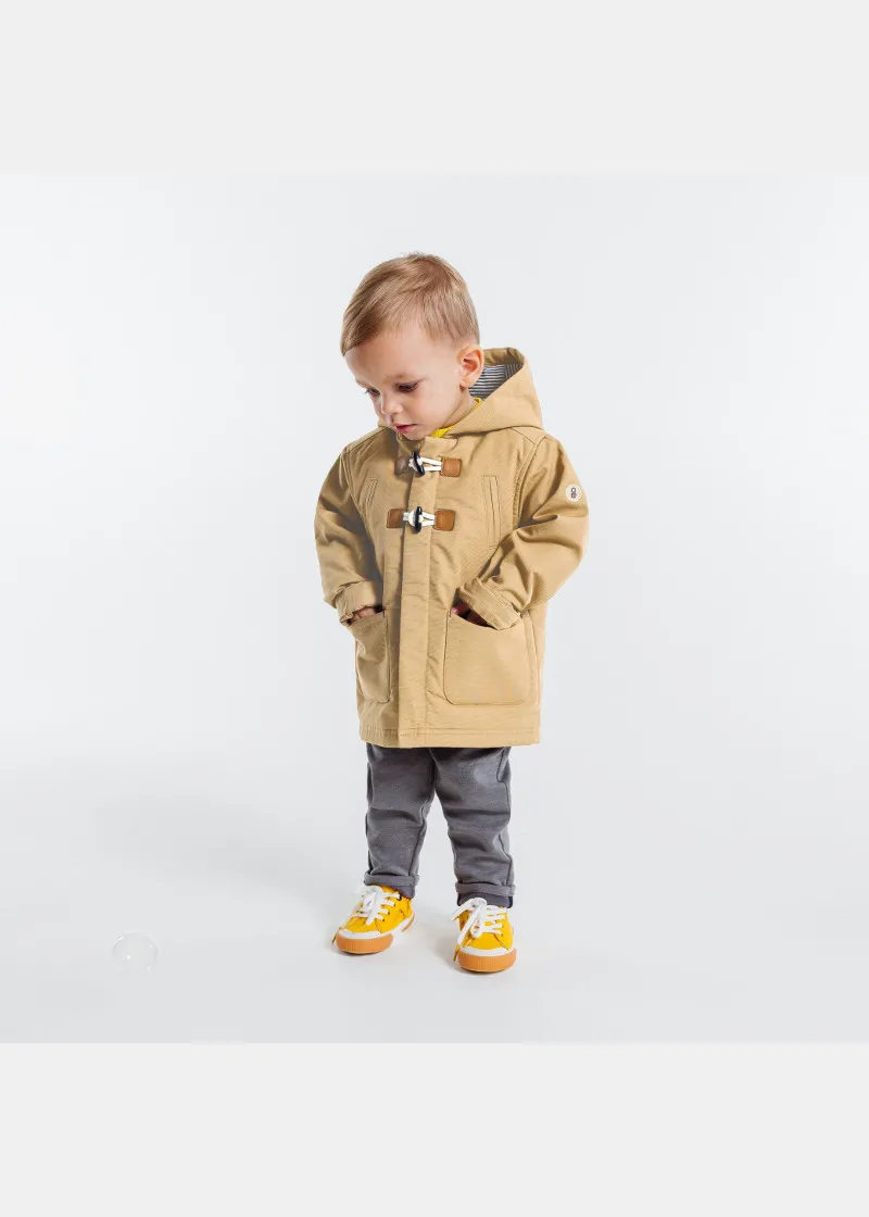 Палтото дозволува капките дожд да се лизгаат, совршени за средината на сезоната. Со качулка и платно што не пропушта вода. Со мека постава, за изглед на морнар, закопчување со патент и копчиња од папокот . 2 големи џебови.
