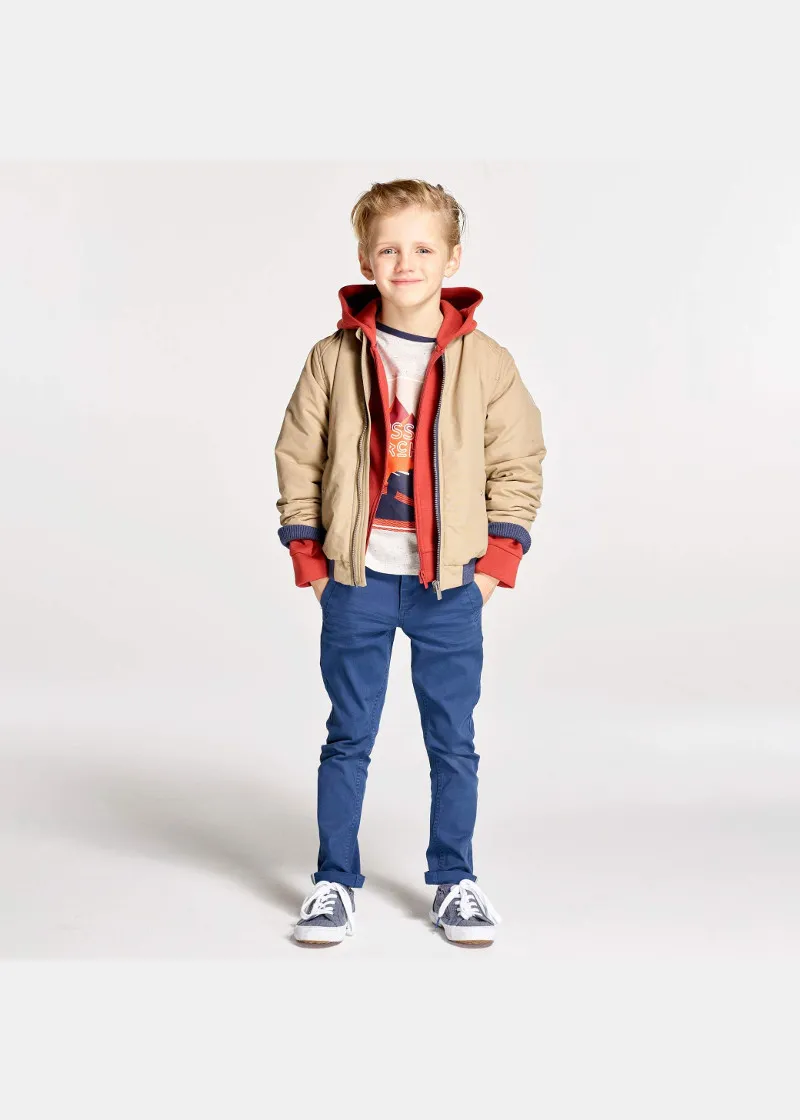 Пролетна јакна инспирирана од спортските палта. Оваа јакна за момчиња е одлична за меѓусезона, има практично закопчување со патент и 2 џеба во предниот дел.