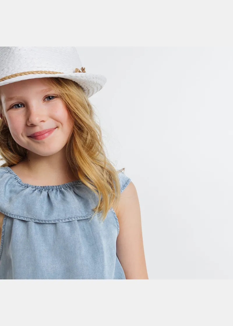 Отворен преден дел, еластична лента на половината, карнери кај ногавиците, се што им треба на девојчињата за долго и топло лето.
