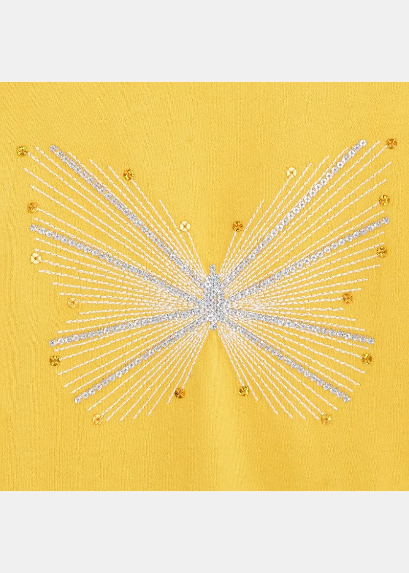 Нема да биде крал на шумите оваа сезона, туку крал на оваа маичка за девојчиња. Ова врзано и везено борово дрво искри на меката памучна ткаенина. Кружно деколте, долги ракави и прав модел.