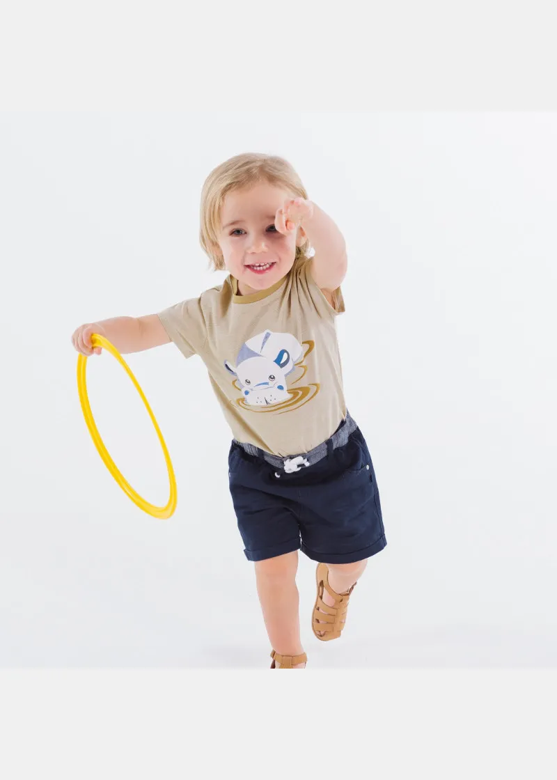 Слатка мечка се топли на оваа маичка на долги ракави за малите момчиња. Кружна јака, достапна во повеќе бои.