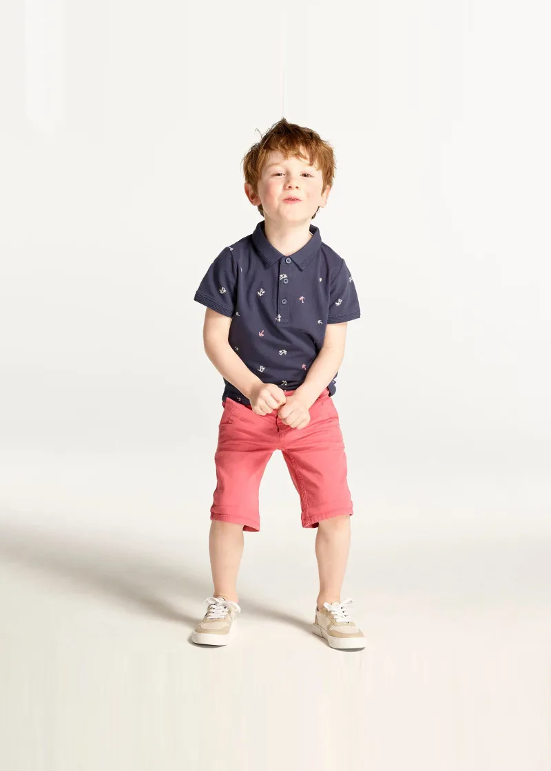 Тренди поло маичка на куси ракави со мотиви од палми. Совршено се вклопува со фармерки или куси бермуди за целосен изглед на момчињата.