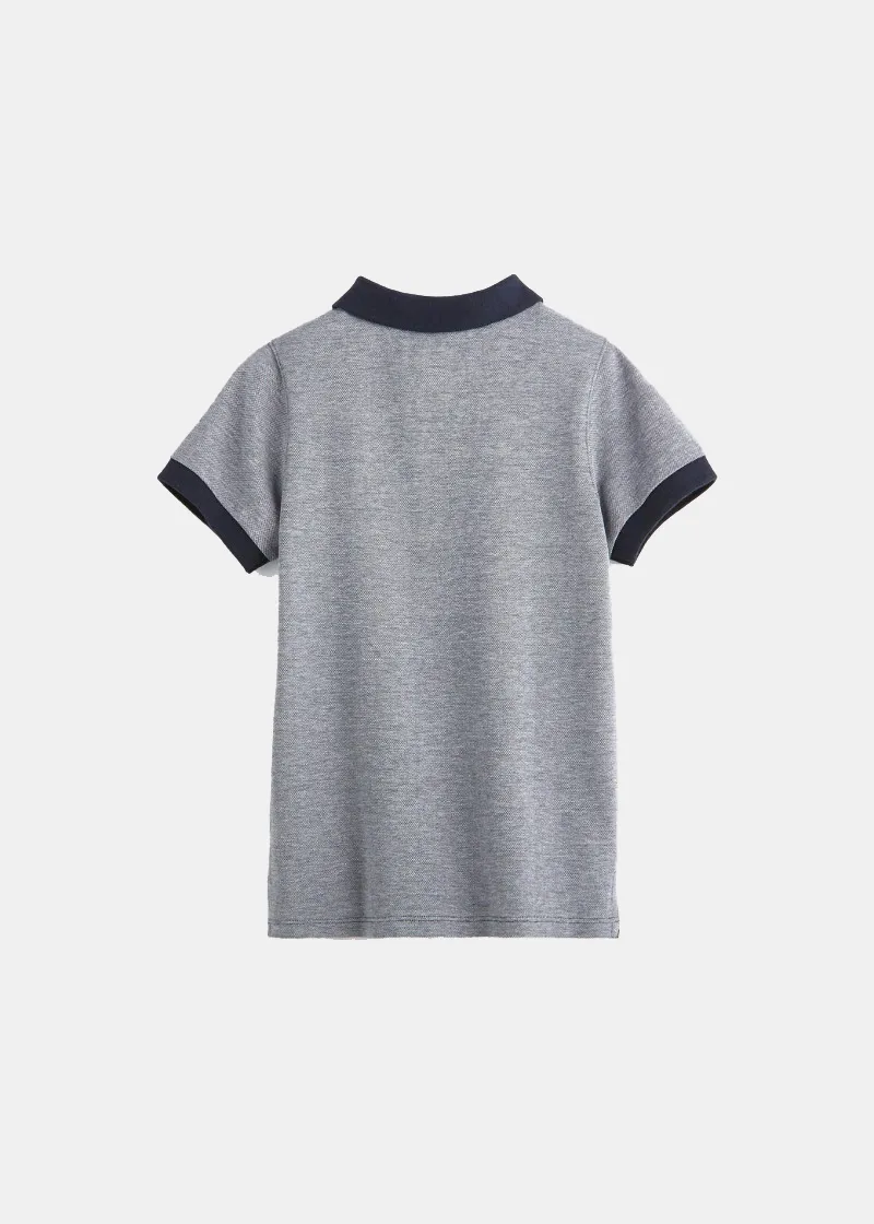 Поло маица со кратки ракави за момчиња. Маичка која лесно се облекува, има јака на вратот и копчиња.