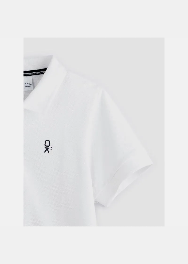 Поло маица со кратки ракави за момчиња. Маичка која лесно се облекува, има јака на вратот и копчиња.