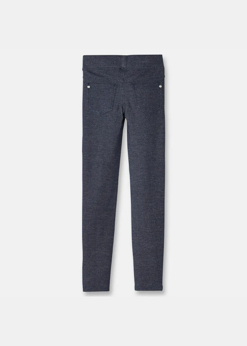Пантолони за девојчиња од мек и растеглив материјал пријатен за носење. Тесни на краевите и со рамен еластичен појас за поголема удобност во текот на целиот ден. 2 лажни џебови напред и 2 вистински џебови на лепенки одзади.