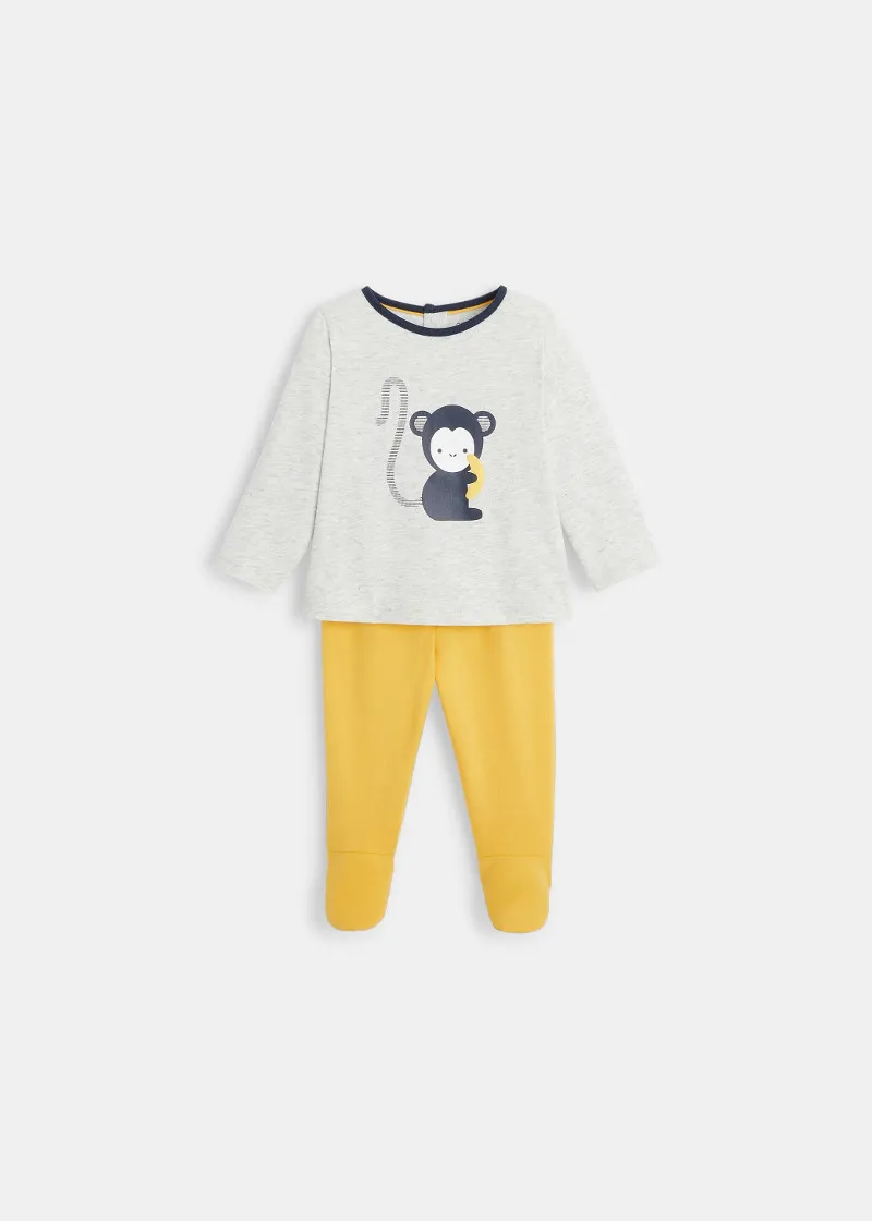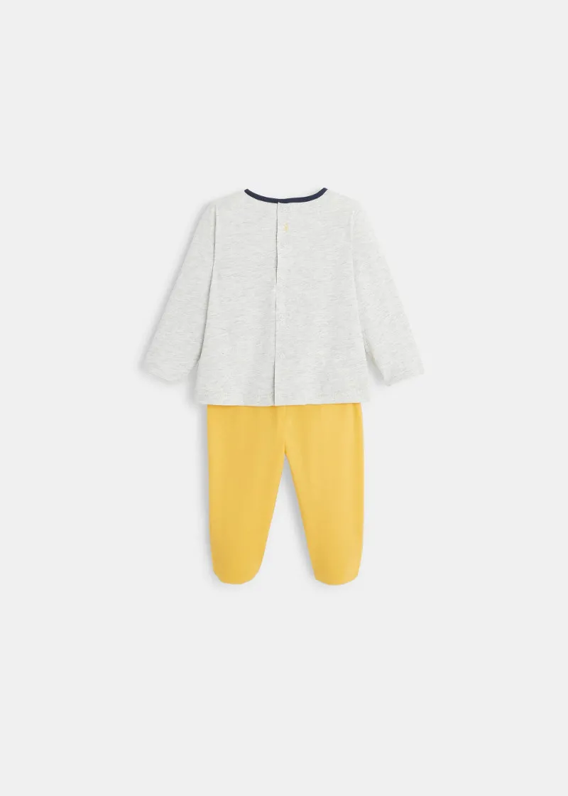 Бебињата имаат нов пријател во овие дводелни пижами! Меки пижами со ластик на половината и имаат врзување помеѓу горниот и долниот дел за да останат пижамите на свое место додека бебето спие.