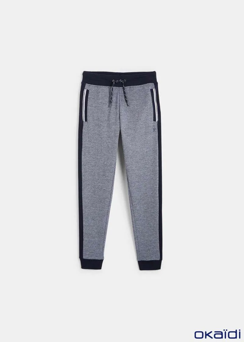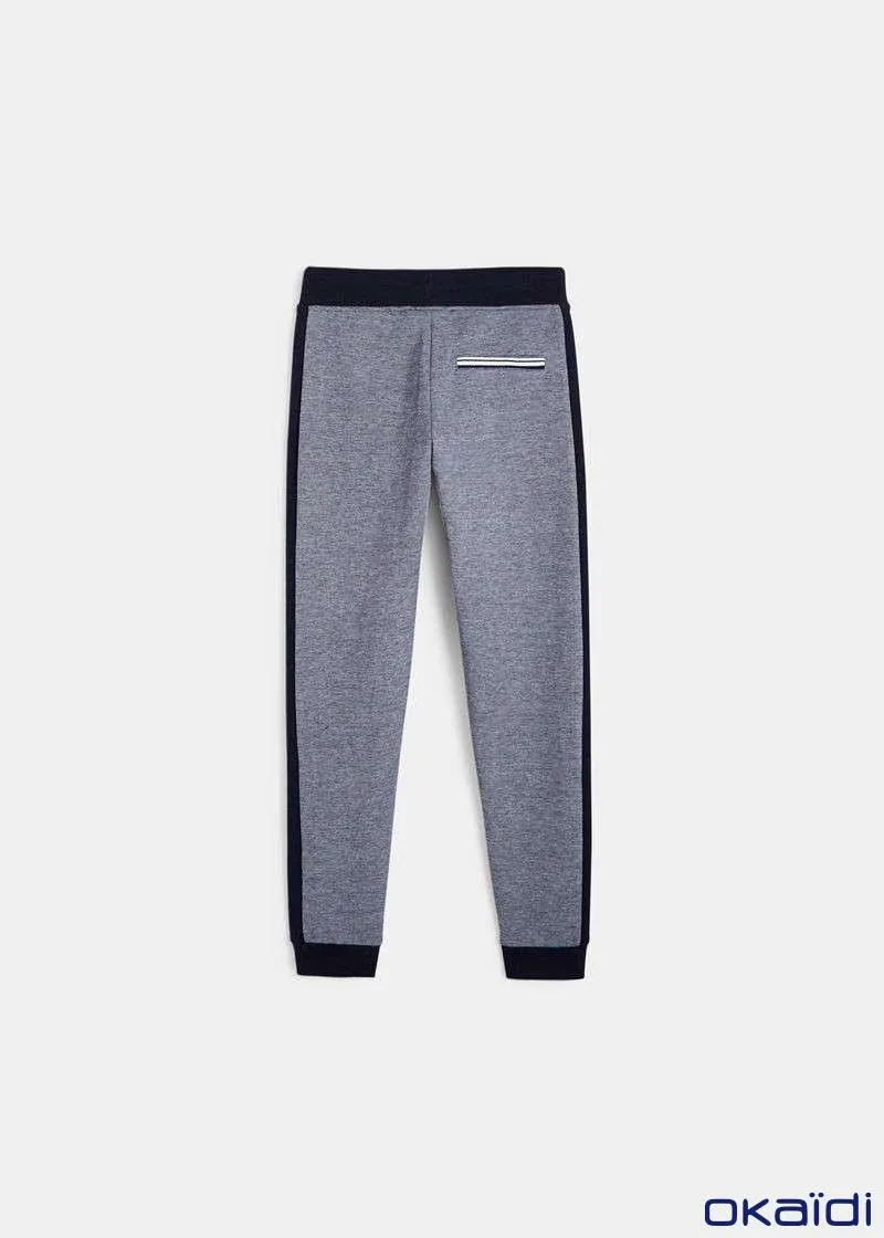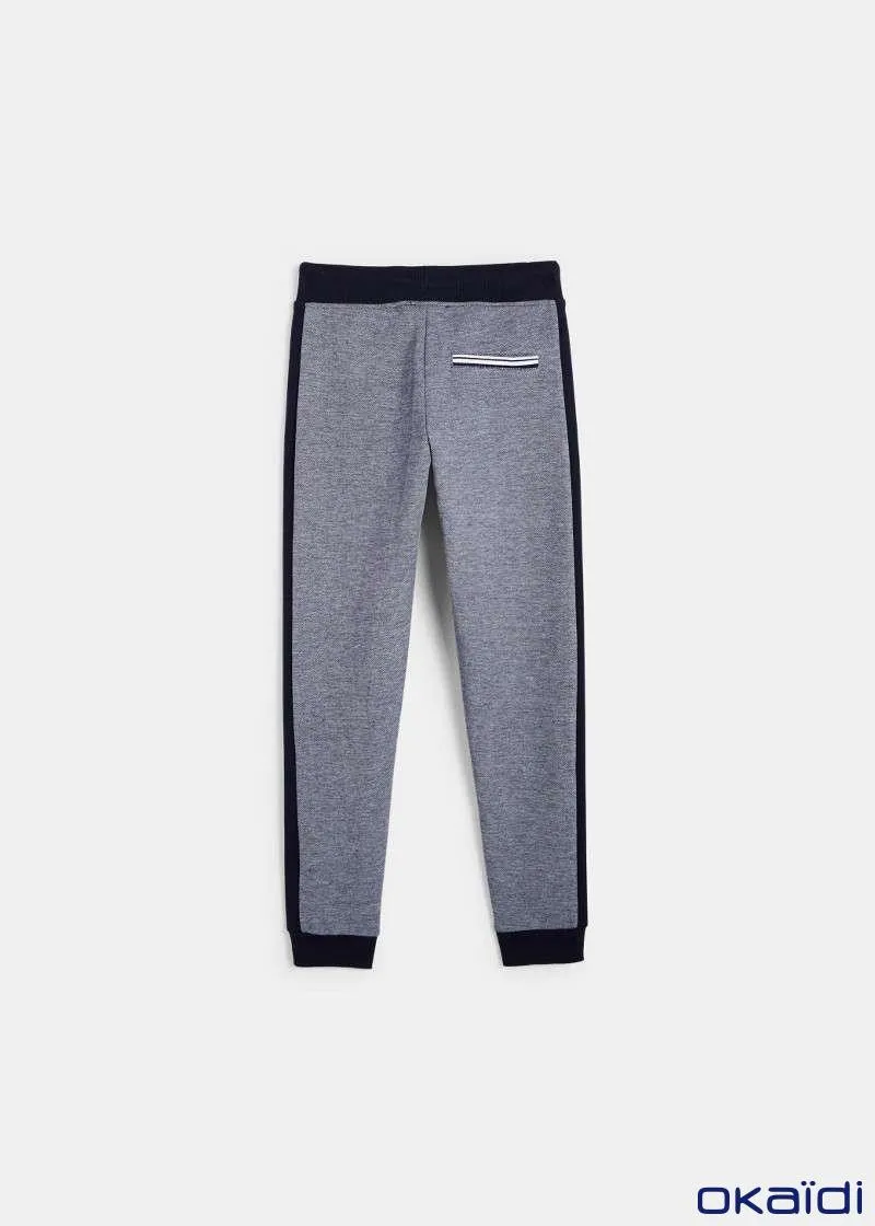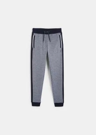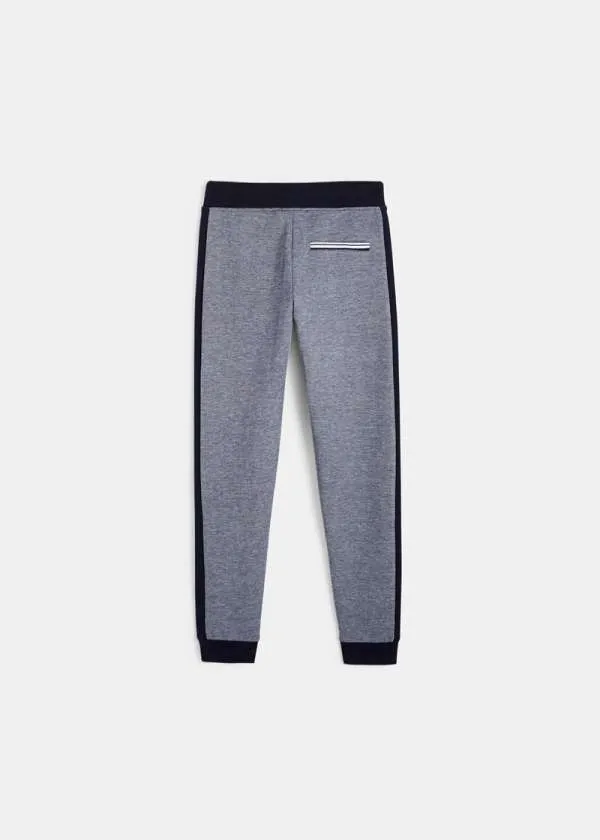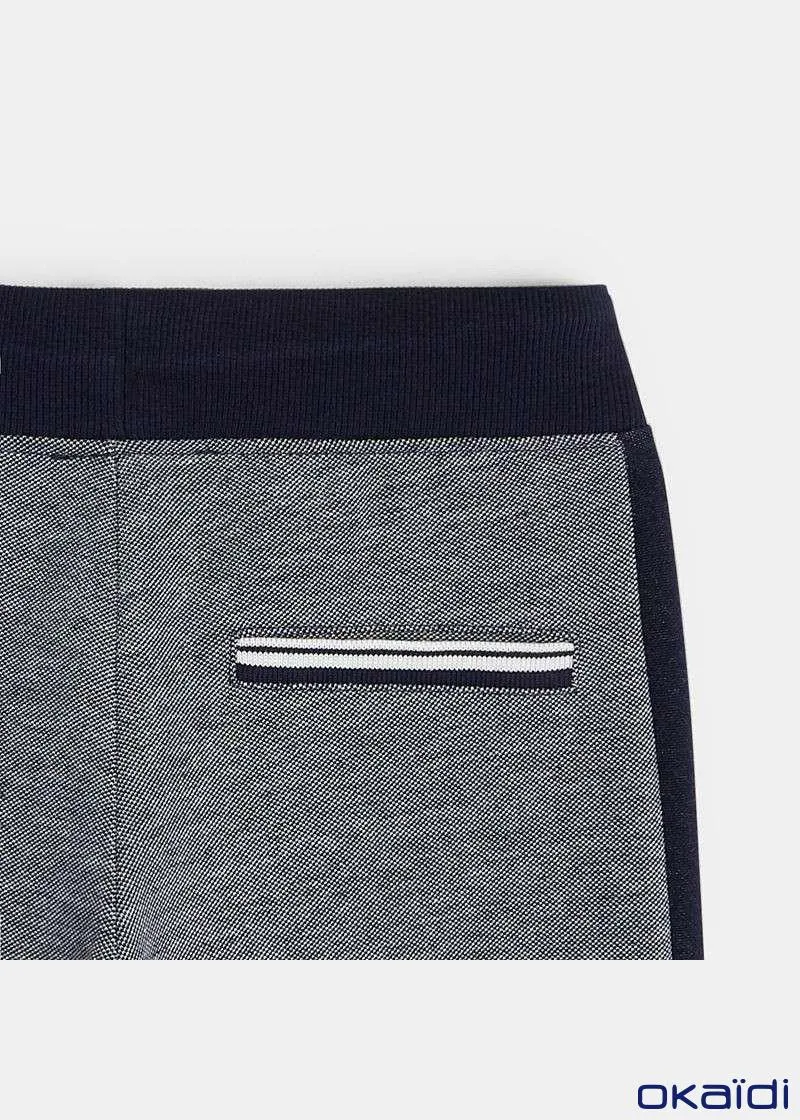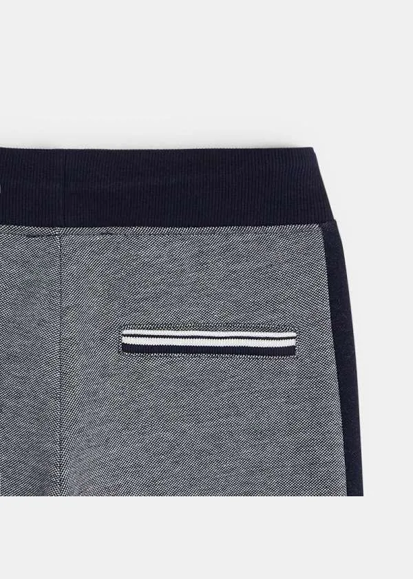 Памучни тренерки за момчиња. Имаат ребреста еластична лента на струкот со врвка, 2 џебови напред и 1 лажен џеб назад.