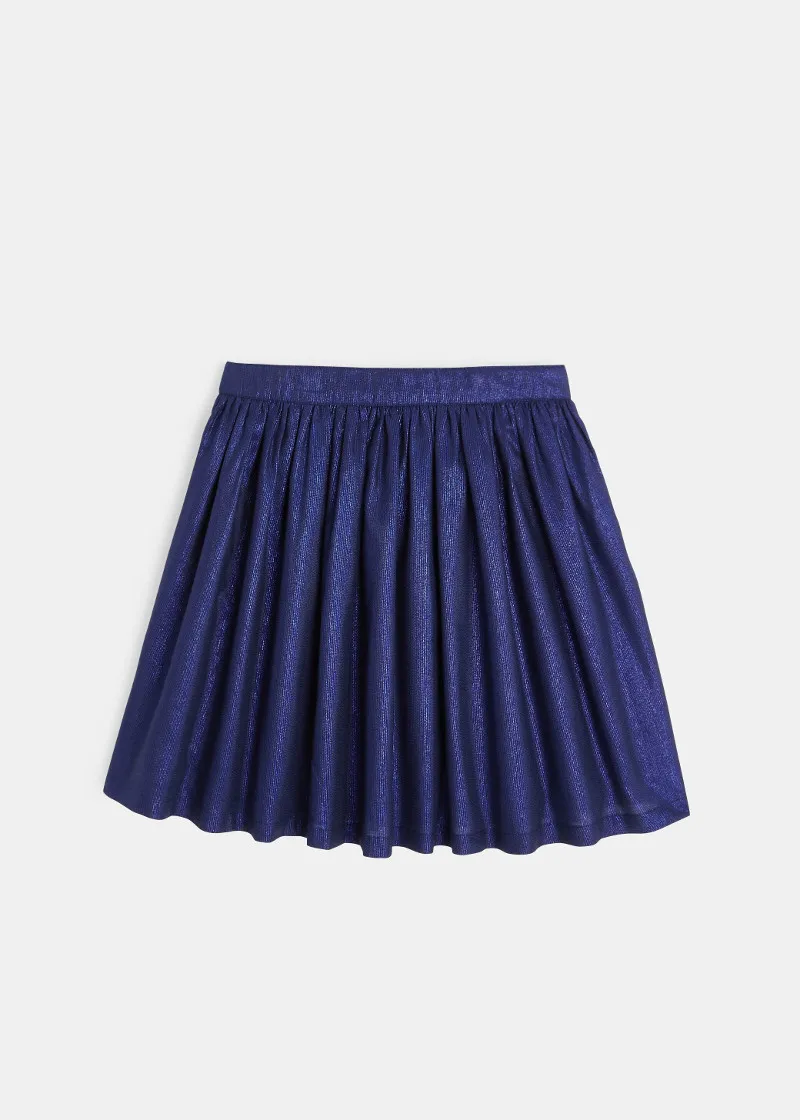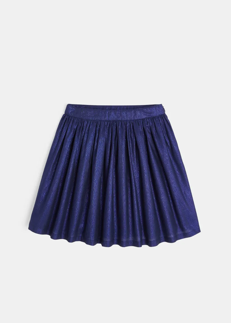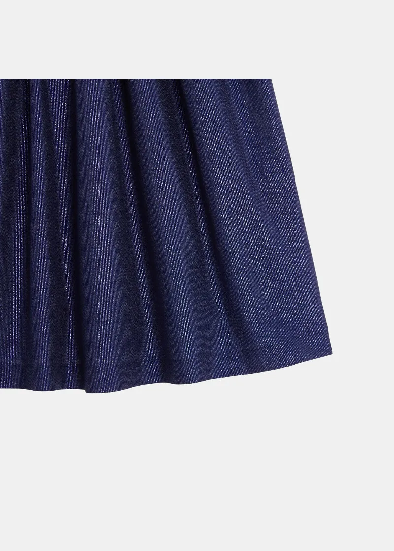 Ова светло кратко широко здолниште си игра со светлината за разубавување на празничните погледи на девојчињата. Лента со затварање на страна за елегантно драпе. Памучна постава.