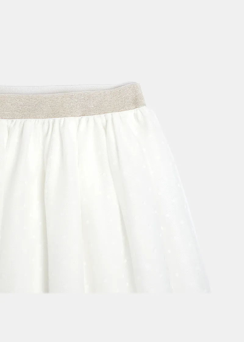 Вртете се. Танцувајте. Прославете. Или само изгледајте прекрасно. Ова балеринско здолниште од швајцарски тул со точки е голем хит кај малите девојчиња! Го сакаме ефектот на волумен, нагласен со памучната постава и светло-еластичната лента на струкот.